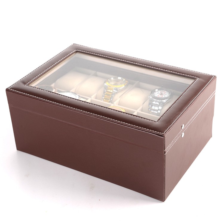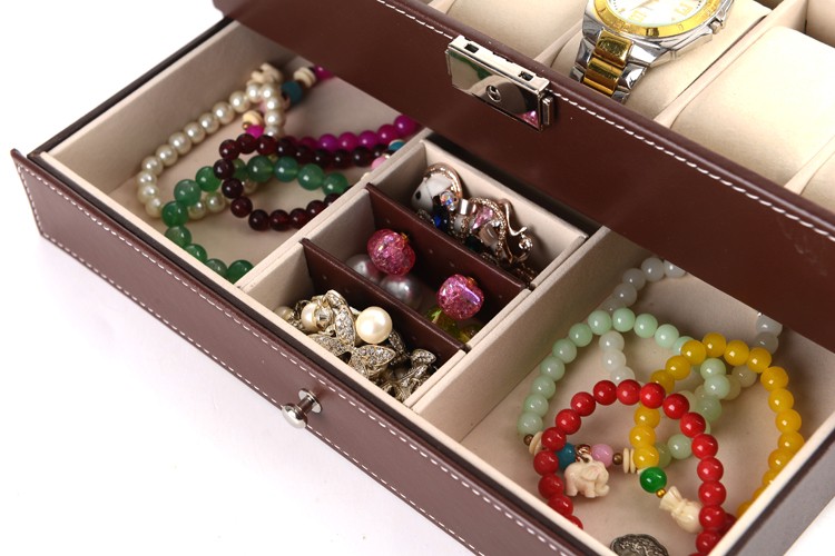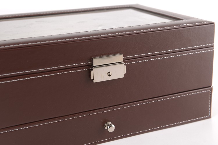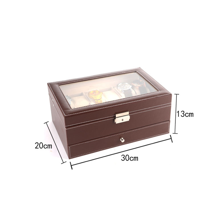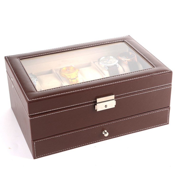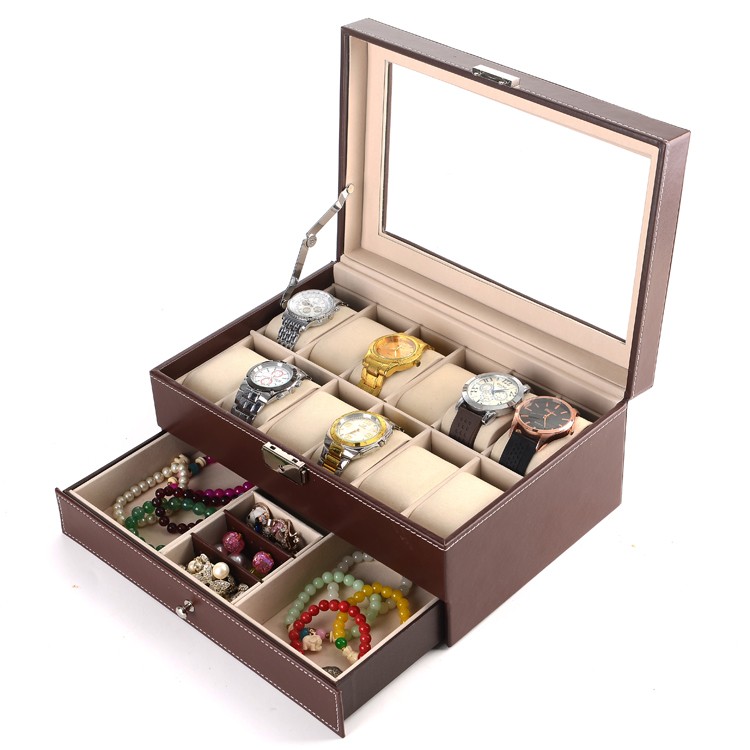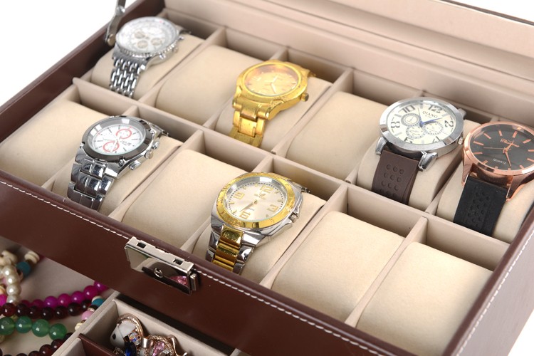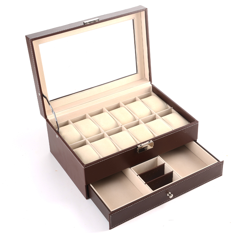 Product description:12grids PU double-layer watch jewelry box flat lock