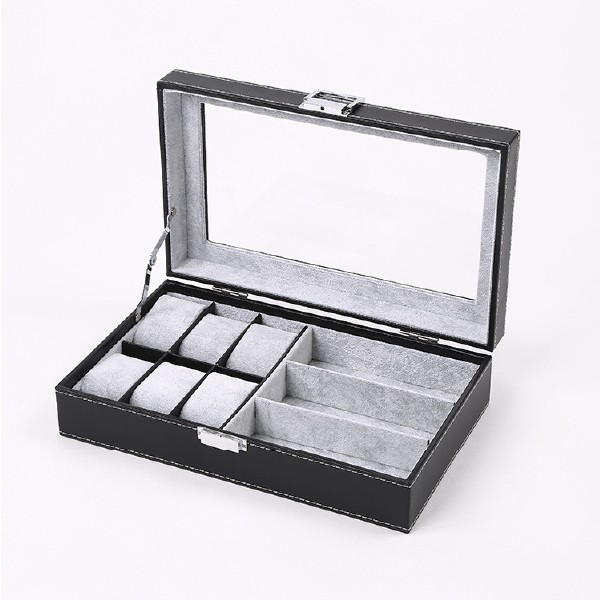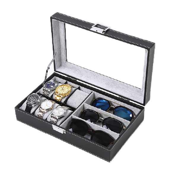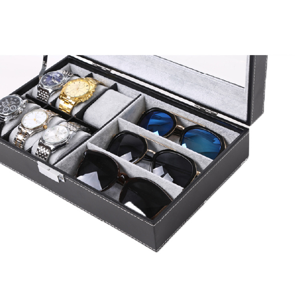 Product description:PU eyewear boxes, 6+3grids, eyewear display and watch storage