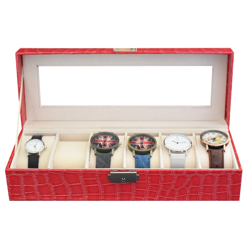 Product description:PU MDF 6grids Watch storage and watch display