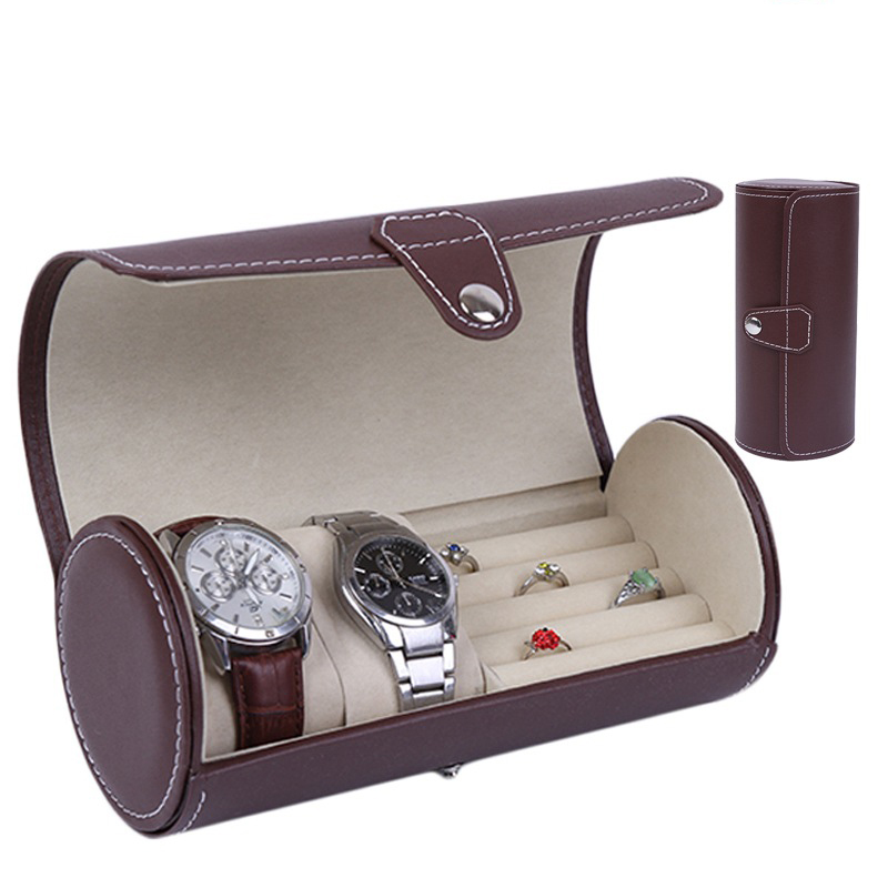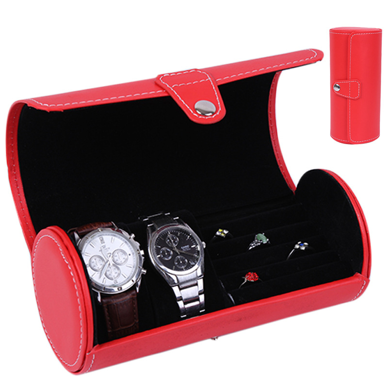 Product description:PU 2grids watch+ring jewelry cylinder box